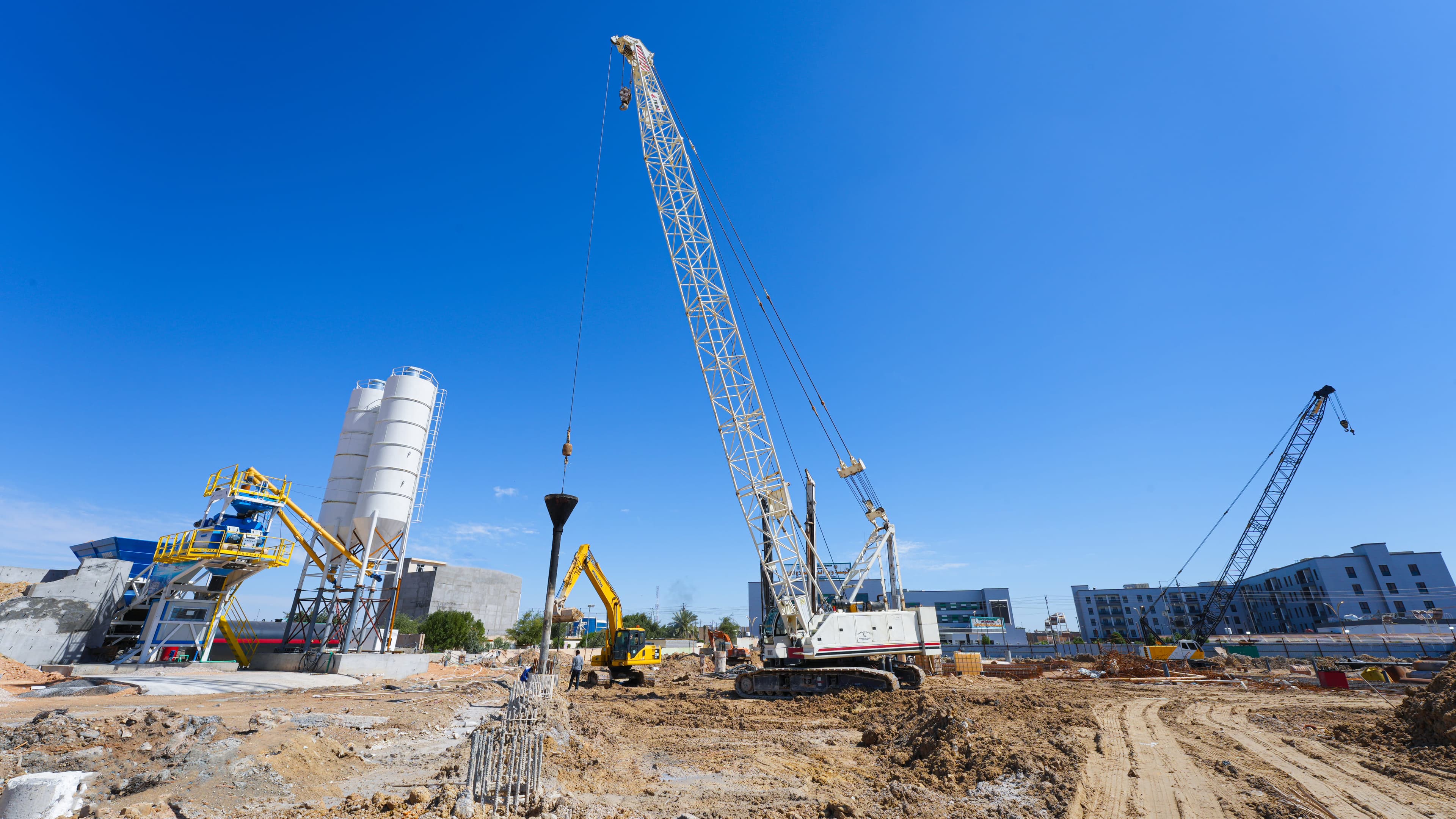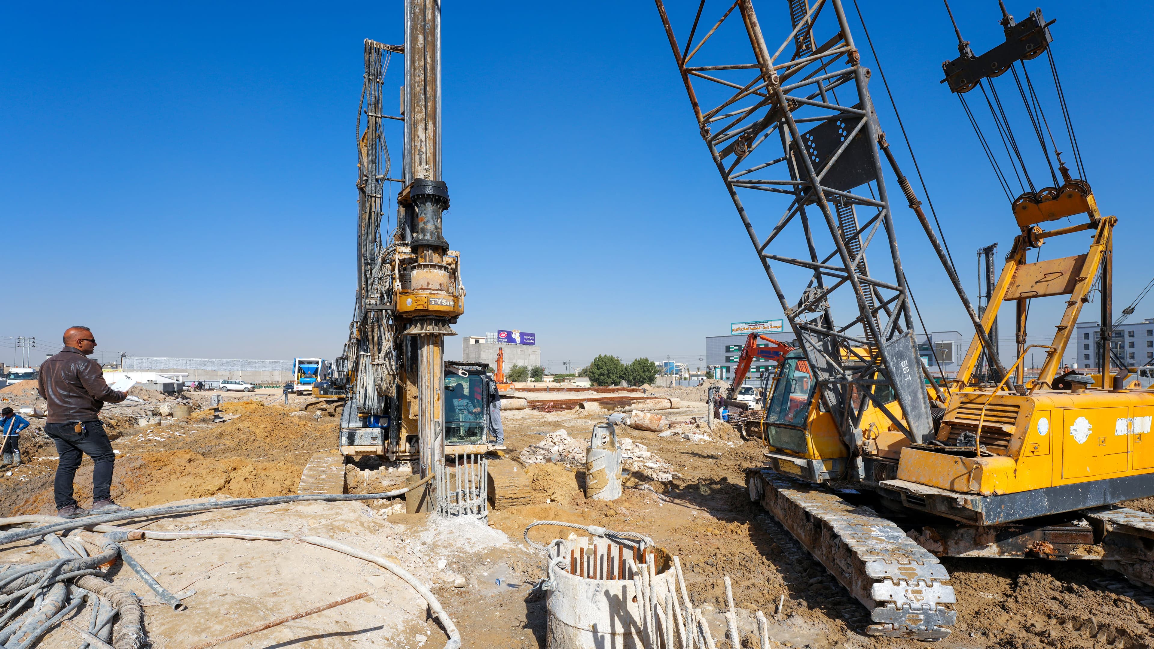 تطلب هذا العمل تدعيم التربة باستخدام تقنية الـ Secant Pile، حيث تم تركيب حوالي 750 ركيزة موزعة على 3 مناطق مختلفة. هذا الإجراء كان ضروريًا لضمان استقرار التربة وسلامة البنية التحتية للمشروع.التعامل مع المياه الجوفية: