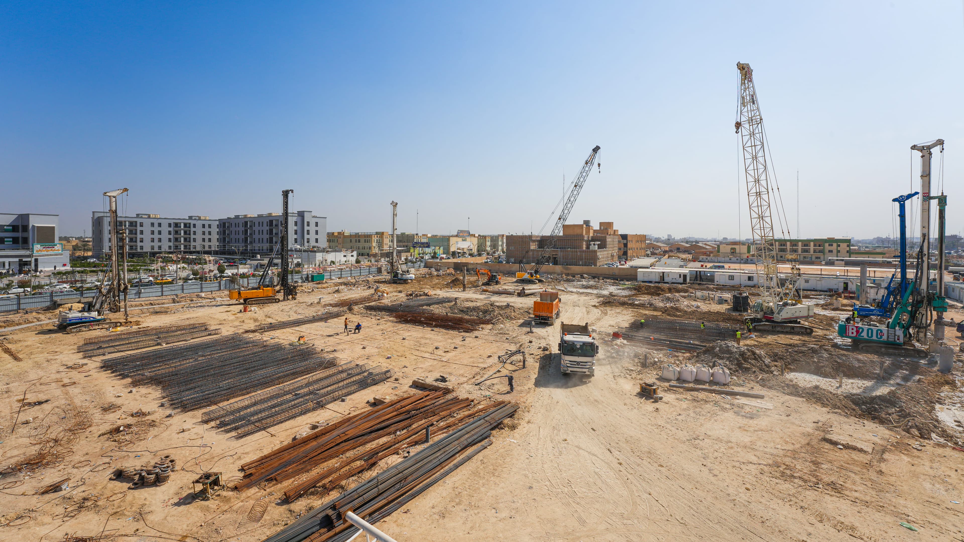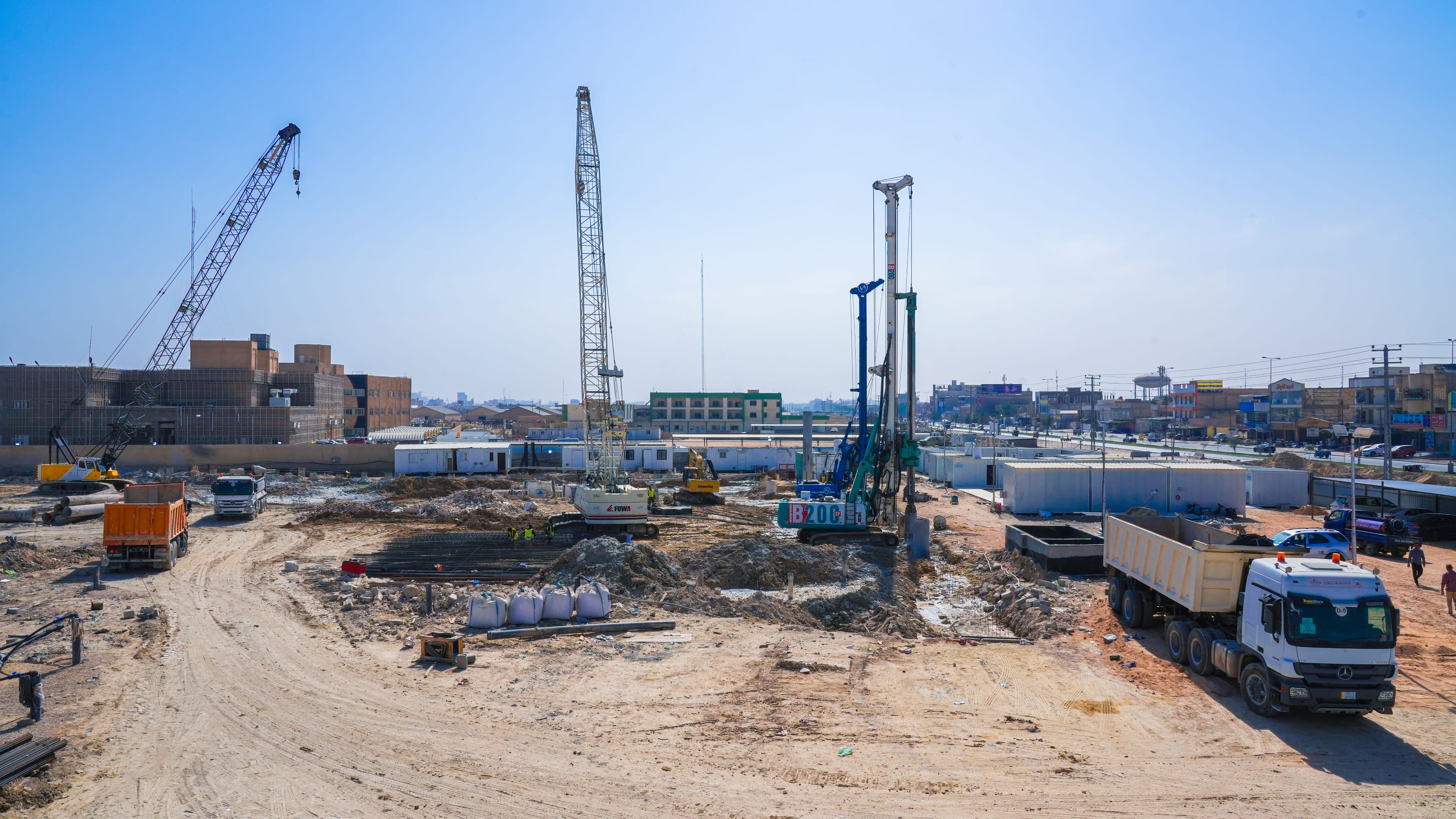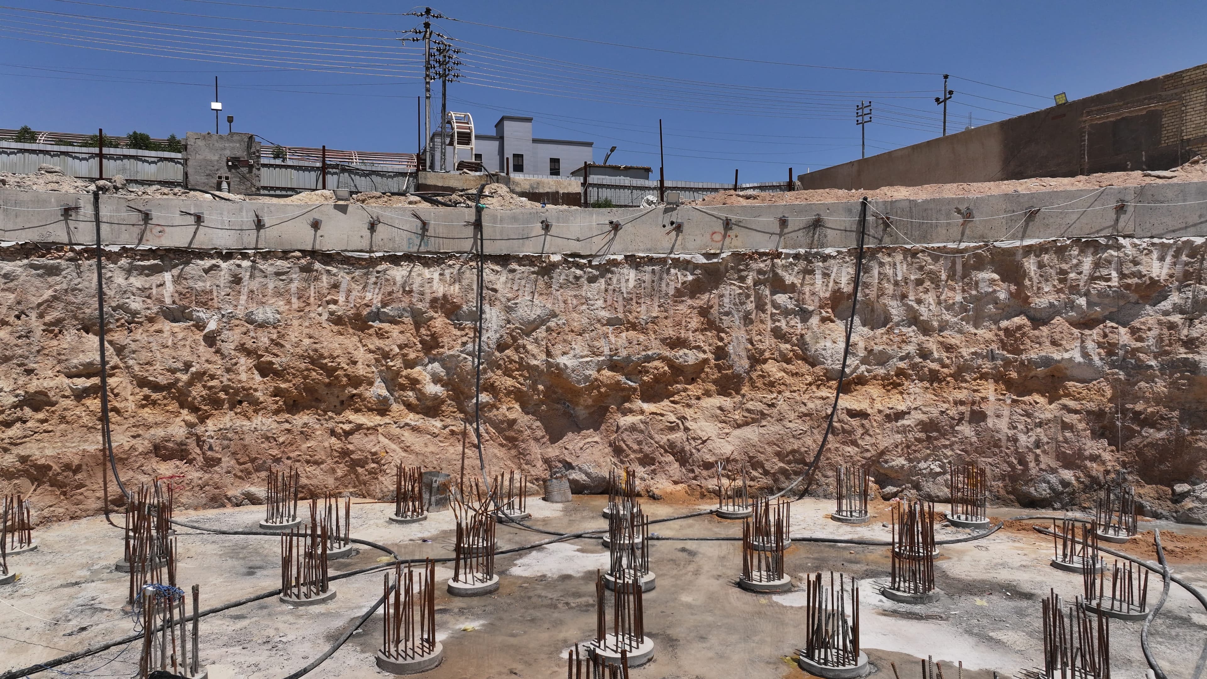 بسبب وجود منسوب المياه الجوفية عند ناقص 1 متر، واجهنا غزارة عالية في المياه الجوفية. لتجاوز هذا التحدي، قامت كوادرنا بنصب منظومة DeWatering لسحب المياه الجوفية والسيطرة عليها، مما مكننا من البدء بمرحلة أسس الركائز بثقة وأمان.